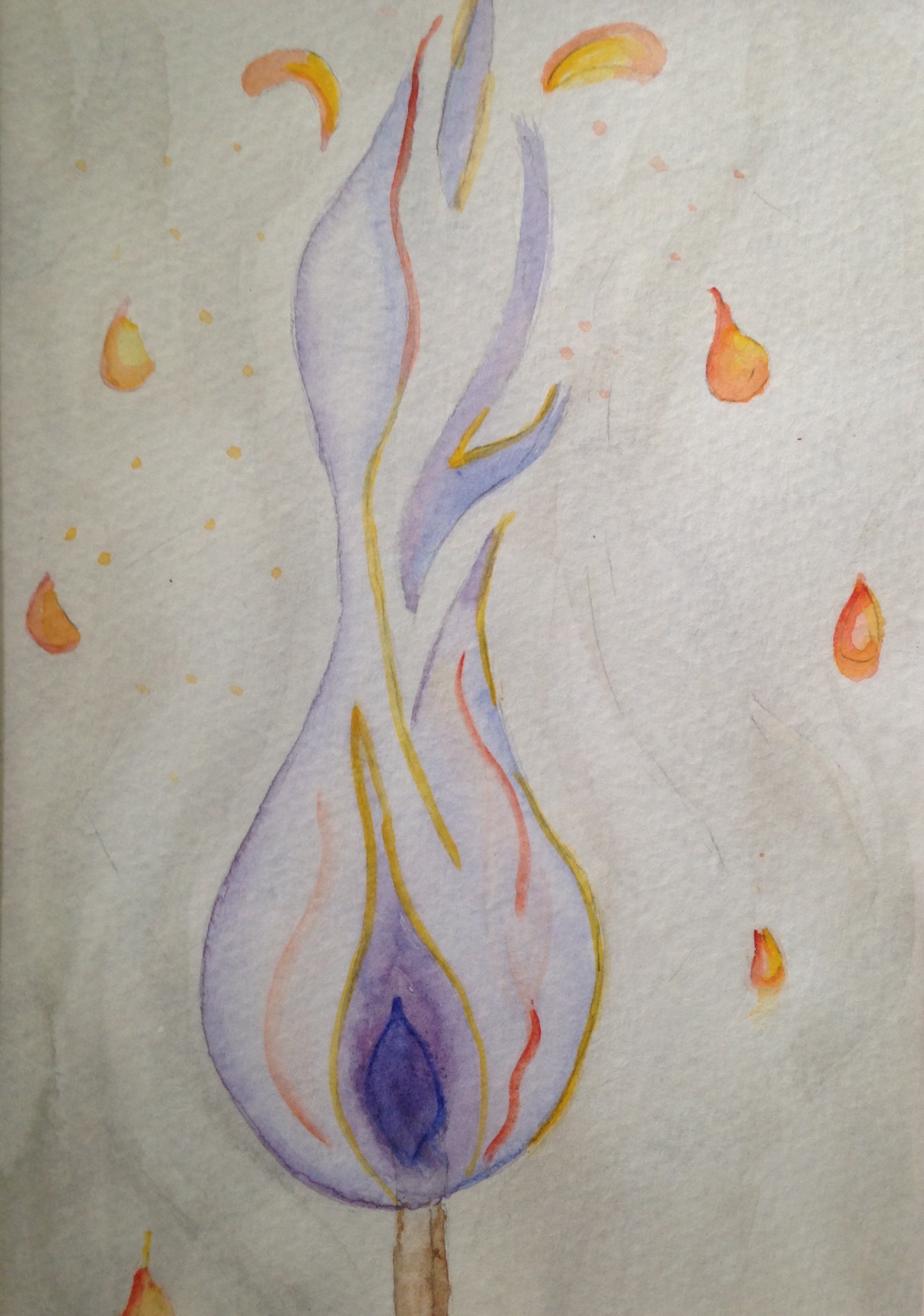 Locket raised the wooden match in the air, and, in one smooth motion, she struck the match across the rock and back into the air above her. A flame sprung to life at the end of the match, as Locket placed it in the holder on the rock. The flame grew higher and higher. It was deep purple at the base, and faded into blue and black. Orange and