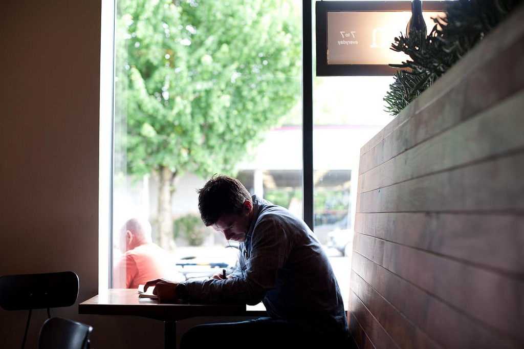 The café buzzed with activity, as Jonathan sipped his coffee.